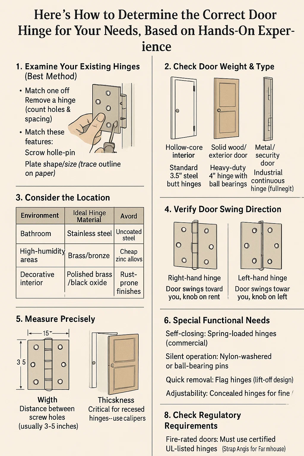 Zde je návod, jak určit správné dveřní závěs Pro vaše potřeby na základě praktických zkušeností: