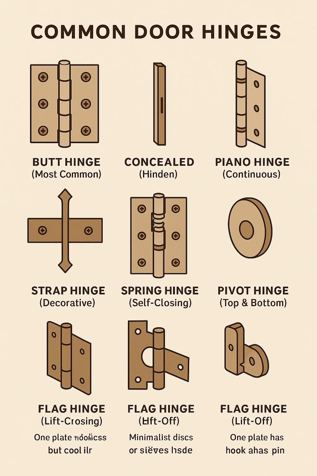 Zde je rozpis běžného dveřní závěs typy, vysvětlené prakticky: