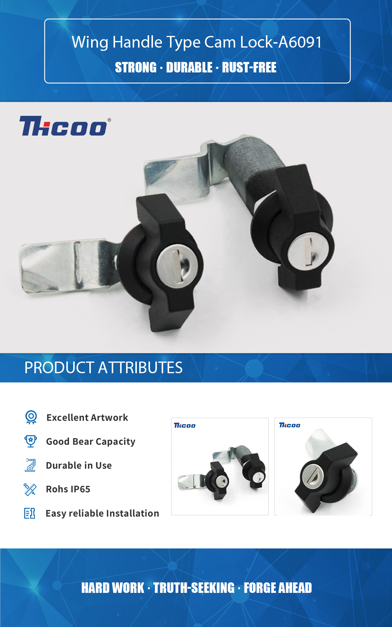 Máme vlastní testovací laboratoř a pokročilé a kompletní kontrolní zařízení, které může zajistit kvalitu produktů. Křídlový zámek typu Cam Lock-A6091 je hlava zámku, která je opatřena závorou. Má malý výstupek, který zapadá do odpovídající drážky v těle západky. Je to skvělý způsob, jak udržet své věci v bezpečí na cestách nebo jednoduše, když je potřebujete nechat ve vozidle, když jedete na veřejné místo.