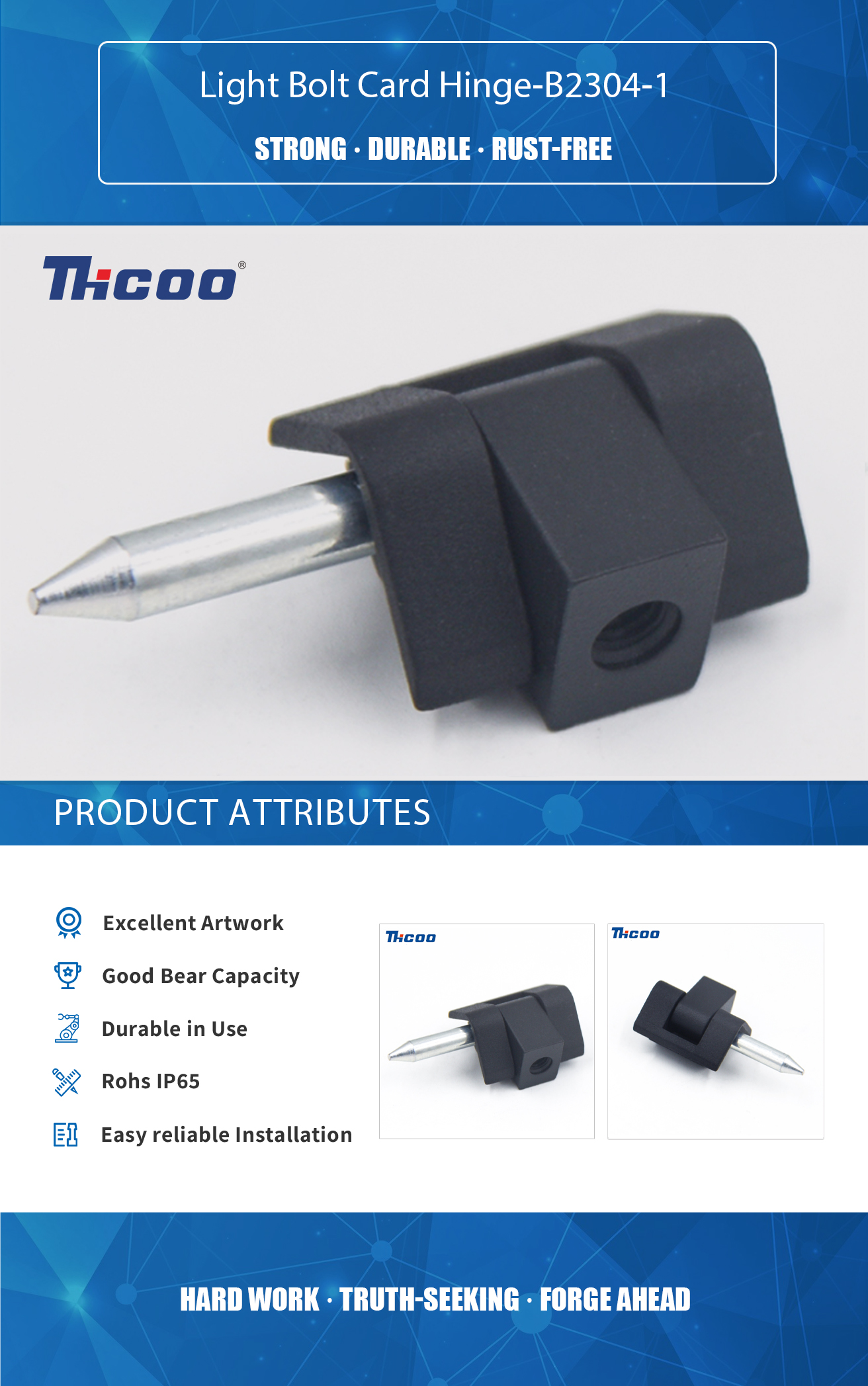 Máme vlastní testovací laboratoř a pokročilé a kompletní kontrolní zařízení, které může zajistit kvalitu produktů. Závěsy Light Bolt Card Hinge-B2304-1 jsou podobné závěsům pin card, ale obvykle mají silnější a bezpečnější držení díky přítomnosti šroubu. Běžně se používají v aplikacích, kde je vyžadován malý, lehký pant, například na pohlednicích, pozvánkách a dalších papírových produktech.
